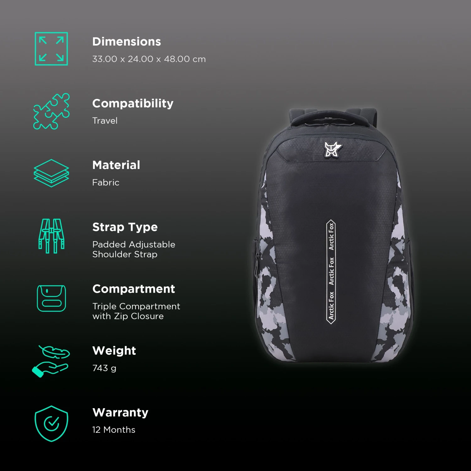 Be the first to review “Arctic Fox Dare 38 Litres Fabric Backpack (Rain Cover, FTEBPKBLKWW054038, Black)” Cancel reply