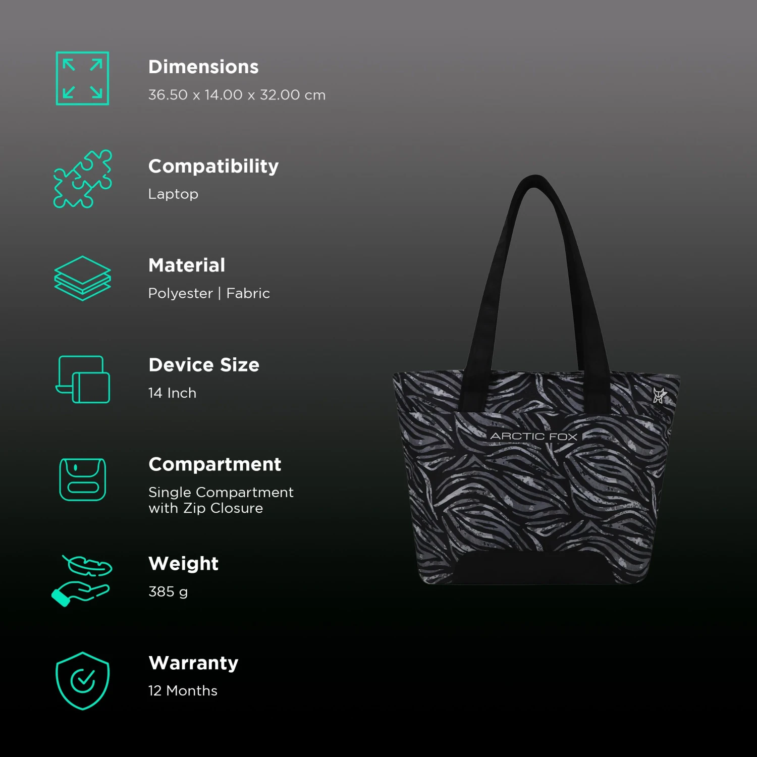 Be the first to review “Arctic Fox Feral 500D Polyester Laptop Tote Bag For 14 Inch Laptop (16 L, Anti Slip Handle, Black)” Cancel reply