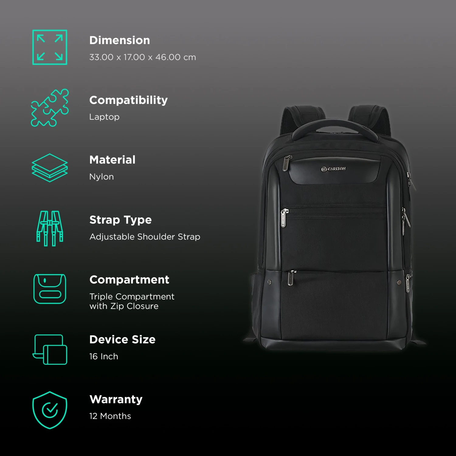 Be the first to review “Carlton Hampshire 01 Nylon Laptop Backpack For 16 Inch Laptop (26 L, Ergo Foam Back, Ferrous Black)” Cancel reply
