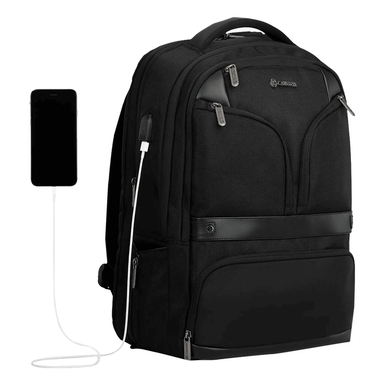 - RFID Protected Front Pocket, Super Organized Interiors, USB Charging Port