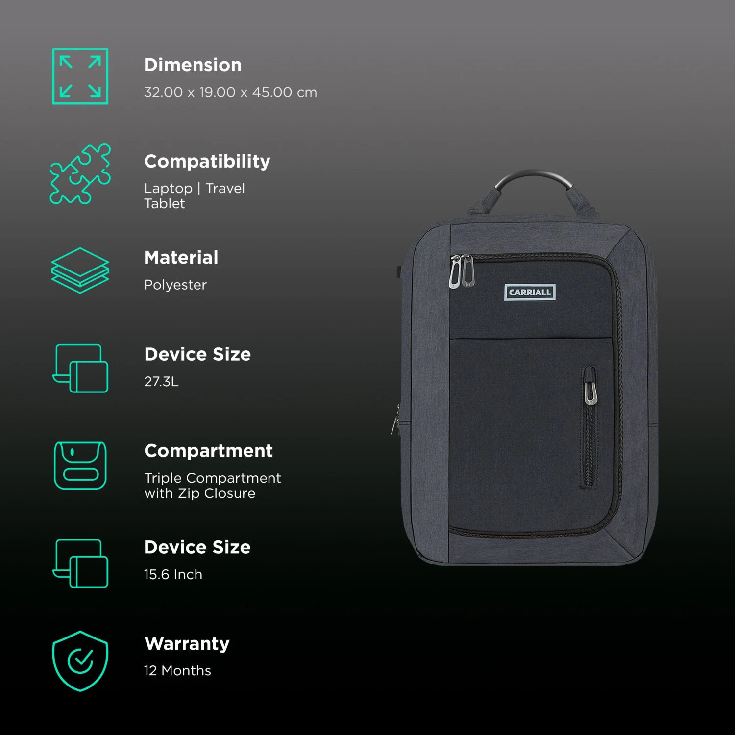 Be the first to review “Carriall Minch Polyester Laptop Backpack For 15.6 Inch Laptop (27.3 L, USB Charging Port, Black)” Cancel reply