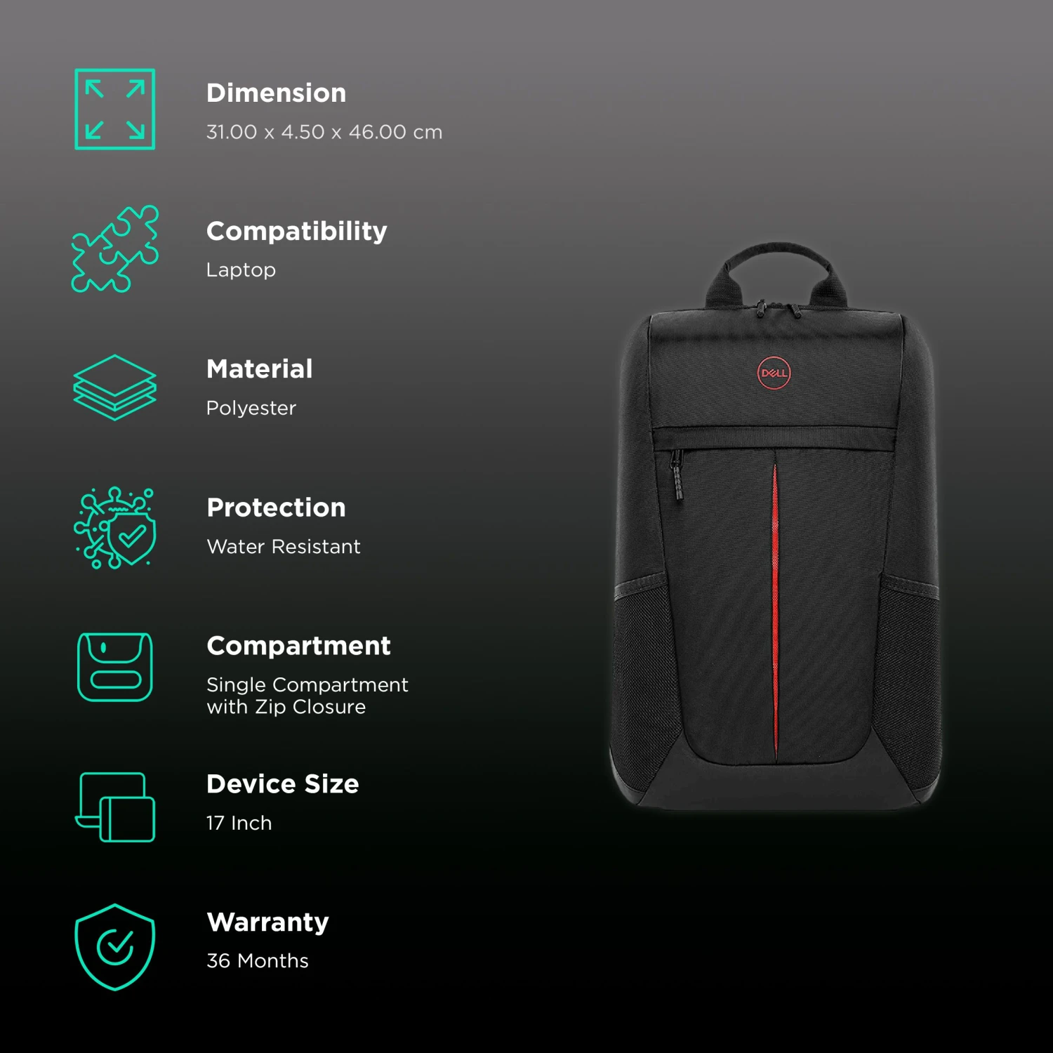 Be the first to review “DELL Gaming Lite Polyester Laptop Backpack For 17 Inch Laptop (23 L, Water Resistant, Black)” Cancel reply