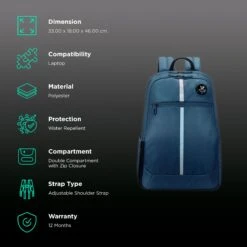 Arctic Fox Chrome Polyester Laptop Backpack For 15 Inch Laptop (27 L, Water Repellent, Deep Dive)