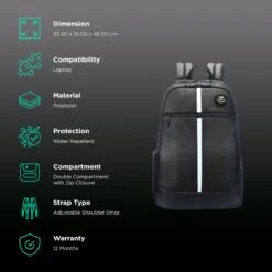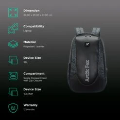 Arctic Fox Chrome Polyester Laptop Backpack For 15 Inch Laptop (27 L, Water Repellent, Black)