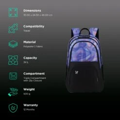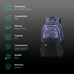 Arctic Fox Dopee 34 Litres Polyester Backpack (Padded Shoulder Strap, FJUBPKNVYWW103034, Navy Blue)