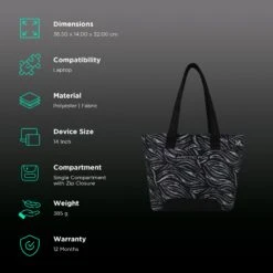Arctic Fox Feral 500D Polyester Laptop Tote Bag For 14 Inch Laptop (16 L, Anti Slip Handle, Black)
